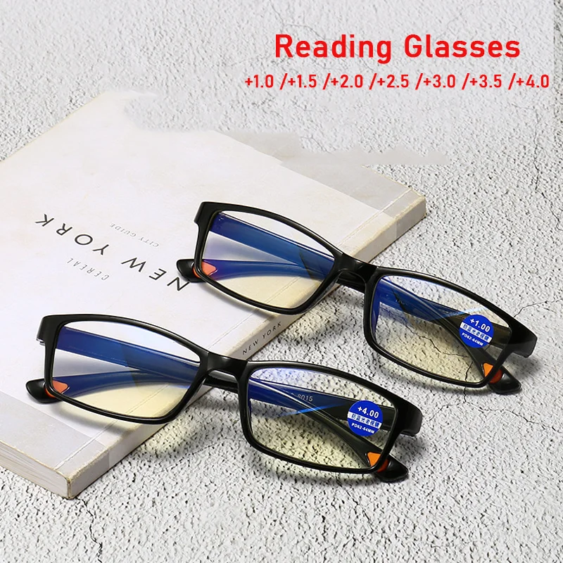 Reading Glasses For Old Man Or Woman Trendy Small Rectangle Anti-blue Light Presbyopic Eyewear Diopter +1.0 To +4.0